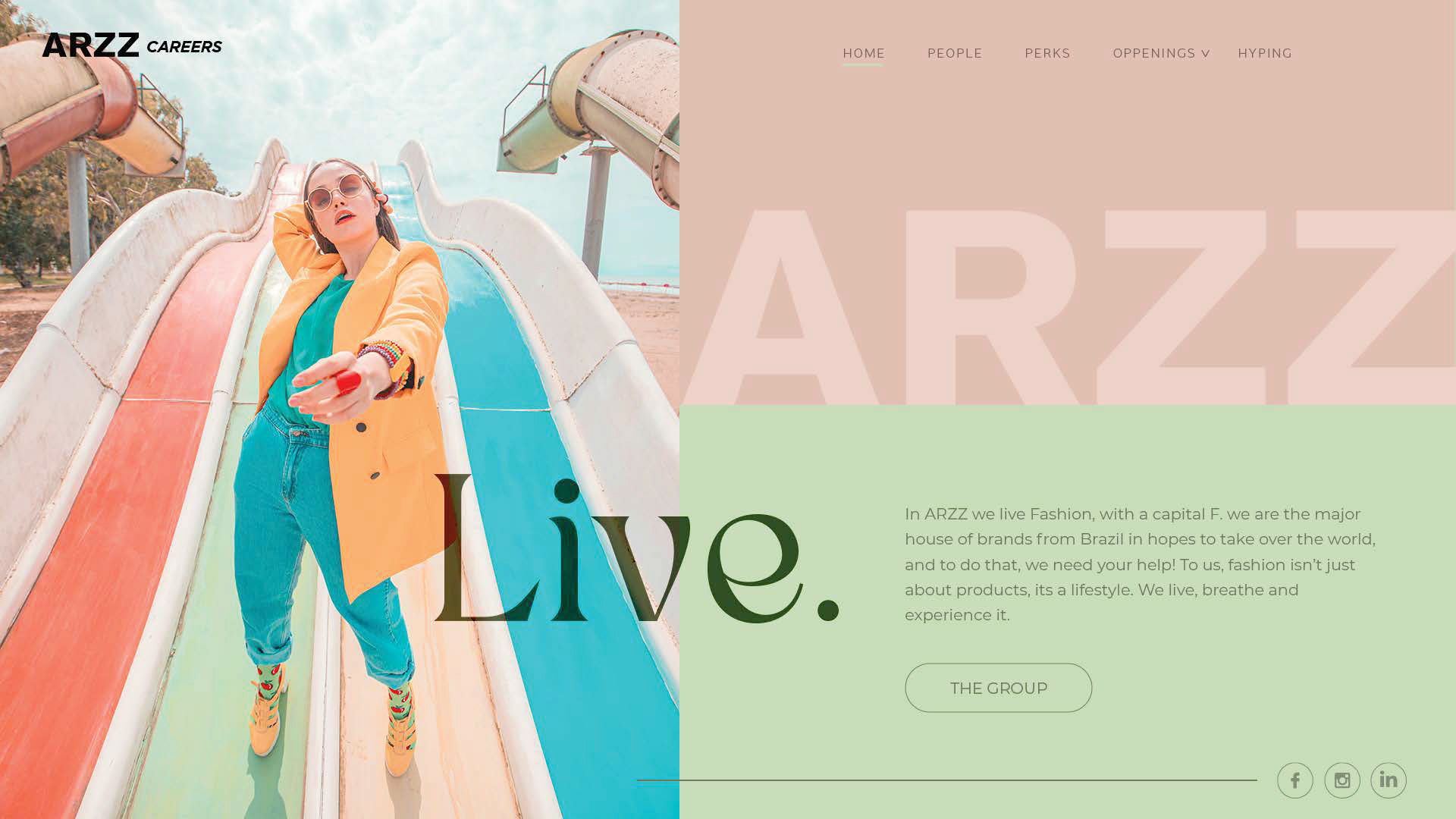 This site was created for the international careers website of the Schutz brand. Development and application of layout, site structure, and creation of the texts for each section. The idea was to convey three pillars of the brand through impactful phrases using a layout and language that appeal to a younger audience connected to the fashion world.